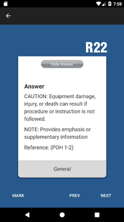 This Private Pilot Checkride app is based on the popular Private Oral Exam Guide book by Michael Hayes. It is designed for student pilots training for the Private Pilot Certificate. More than 600 questions and responses ensure all the subjects a Private Pilot candidate will be tested on during checkrides and review flights are covered. Topics include: certificates and documents, weather, determining performance and limitations, airplane systems, cross-country flight planning, night operations, and aeromedical factors. Answers and explanations were researched using FAA documents (which are identified so pilots know where to go for further study) as well as interviewing FAA examiners. Questions can be marked for further study from any subject to build your own collection of flashcards. An Applicant Practical Test Checklist and quick-reference to the Private Pilot maneuvers and tolerances (as defined in the Practical Test Standards and Airman Certification Standards) are also included.