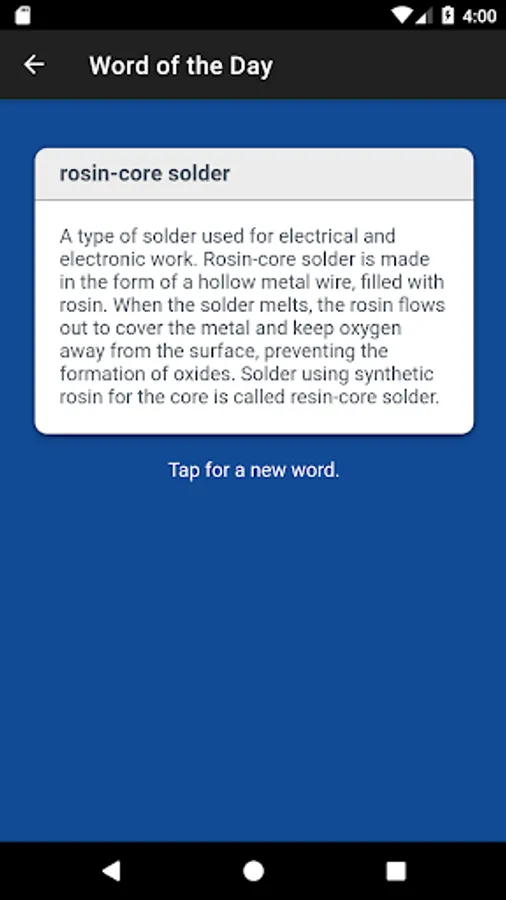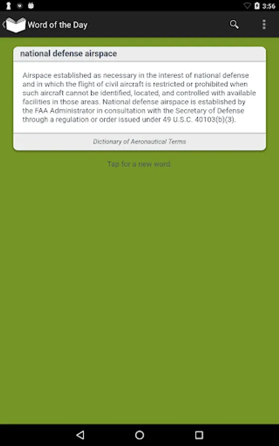 • Word of the Day helps you learn a new aviation term daily; tap-it feature issues a new word on demand.