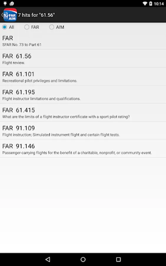 Aviation Supplies & Academics (ASA, Inc.) has built a reputation for providing the aviation community with the most accurate and reliable FAR/AIM products available. The FAR/AIM app continues this tradition, containing information from Titles 14 and 49 of the Code of Federal Regulations (14 and 49 CFR) pertinent to pilots, flight instructors, and flight crew, combined with the Aeronautical Information Manual (AIM), and Pilot/Controller Glossary. The ASA FAR/AIM app features: