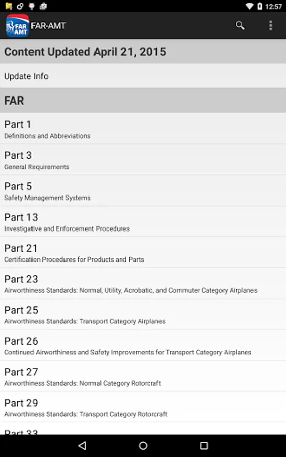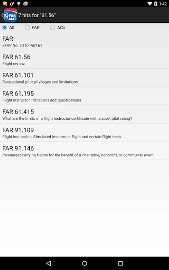 ASA has built a reputation for providing the aviation community with the most accurate and reliable FAR/AIM products available. The FAR AMT app continues this tradition, containing information from Title 14 of the Code of Federal Regulations (14 CFR), as well as Advisory Circulars (ACs) pertinent to Aviation Maintenance Technicians (AMT), aircraft maintenance operations, and repair shops. In addition to all the information included in ASA’s printed FAR AMT book, this app includes the Pilot Controller Glossary and the complete Aircraft Inspection, Repair and Alterations text (AC43.13-1B and AC 43.13-2B). The app is fully searchable, with the option of narrowing your search hits to regulations, Advisory Circulars, or both. ASA FAR-AMT app features: