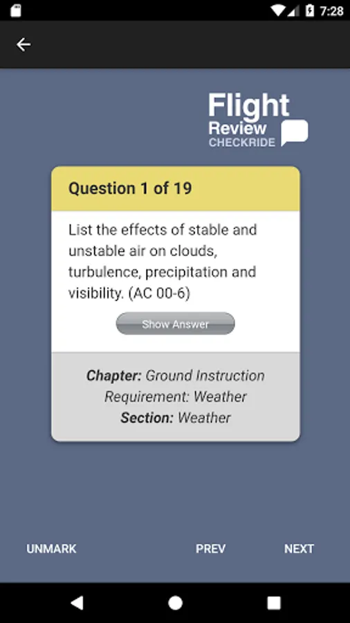 All pilots, whether they fly for pleasure, business, or as a career, must take a flight review every 2 years (sometimes called a Biennial Flight Review or BFR). The Flight Review Checkride app delivers valuable information in a question and answer flashcard format, providing an excellent study and preparation tool for students, pilots, and instructors alike who are preparing for or issuing the flight review required by FAA regulation 14 CFR 61.56. Based on the popular Flight Review Oral Exam Guide book by Jackie Spanitz, flight instructors and FAA authorized flight review administrators will find this app to be extremely helpful in developing a well-rounded flight review tailored to the applicants' needs. Applicants will learn what to expect in their upcoming flight review, refresh their knowledge, and renew their confidence, all of which will ensure safe practices while in flight. Also includes current FAA guidance on flight reviews including AC 61-98B Currency Requirements and Guidance for the Flight Review and Instrument Proficiency Check, Conducting an Effective Flight Review, AC 61-91J Wings Pilot Proficiency Program, and a Flight Review Checklist. Other additions include information on special flight permits, ADs, EFBs, airport markings and signs, runway incursion avoidance, risk management, and a checklist to reflect the Practical Test Standards. The flight review must include 1 hour of ground instruction as well as 1 hour of flight instruction. The information provided in this app may be used by instructors to fulfill these requirements. The FAA offers different options for completing the Flight Review, and this app covers all of these in detail. International pilots can use this app to help familiarize themselves with flight operations in the United States.