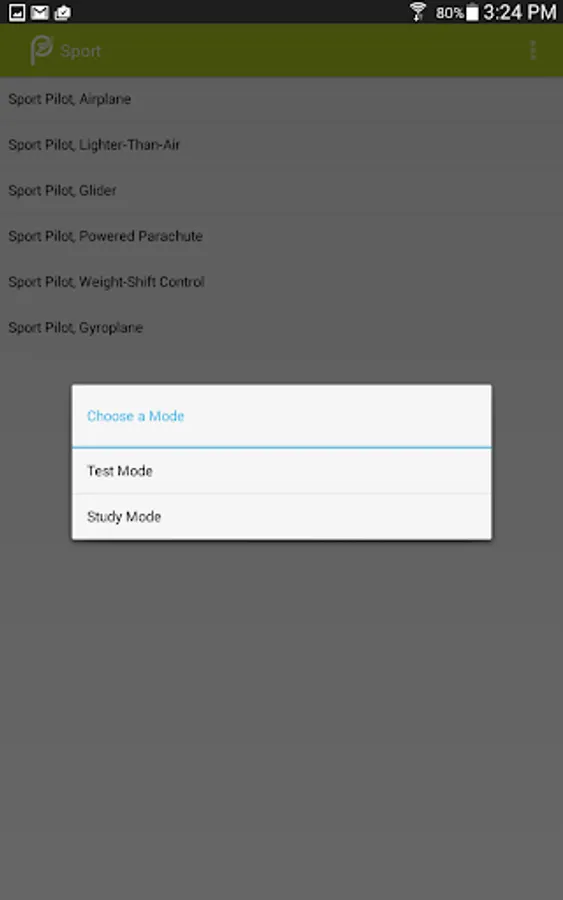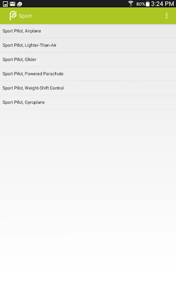Comprehensive preparation, study and test tool for the Sport Pilot (Airplane, Gyroplane, Glider, Lighter-Than-Air, Powered Parachute, and Weight-Shift Control) FAA Knowledge Exam. More than 300 sample questions, answers and explanations included, for you to study by subject or with a true-to-form practice test. Compatible with Android phones and tablets, this app provides a mobile solution for pilots preparing for their FAA “written” exam. Study by subject, supported with explanations. Take practice tests, and review the graded test.