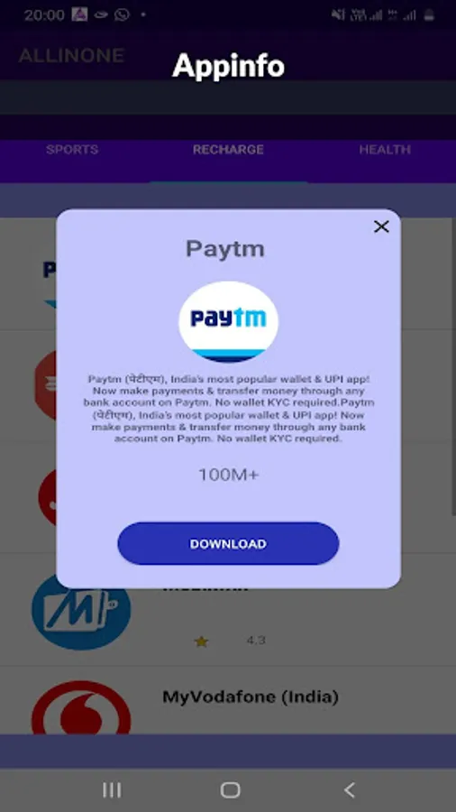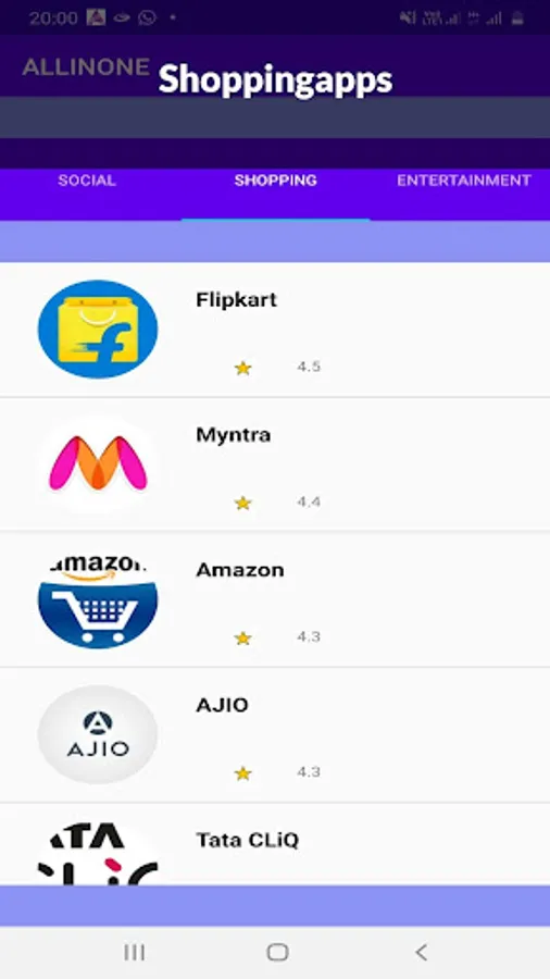 An application that displays applications of all our daily needs,in the order of review by the existing users.All your social,shopping,entertainment,food,travel,sport,recharge,health,news,utility app all under the single window.
