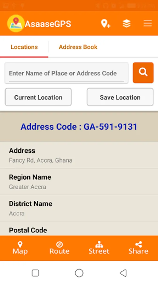 AsaaseGPS is integrated with Google maps to allow for easy navigation of a particular area, detailing major road arteries and other points of interest.
