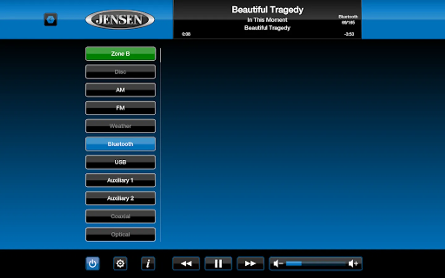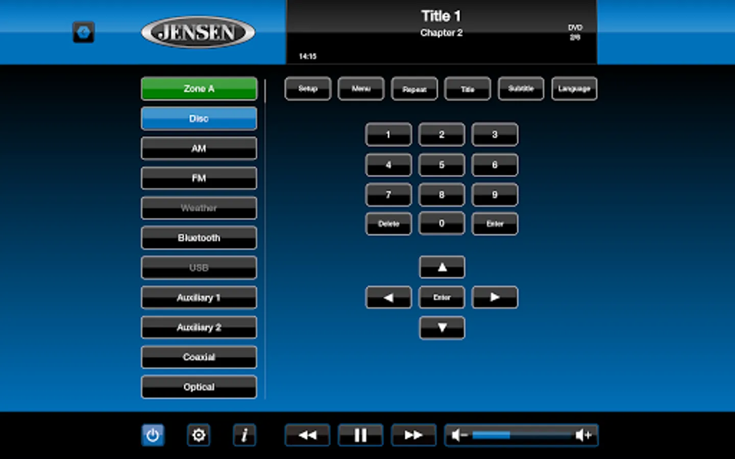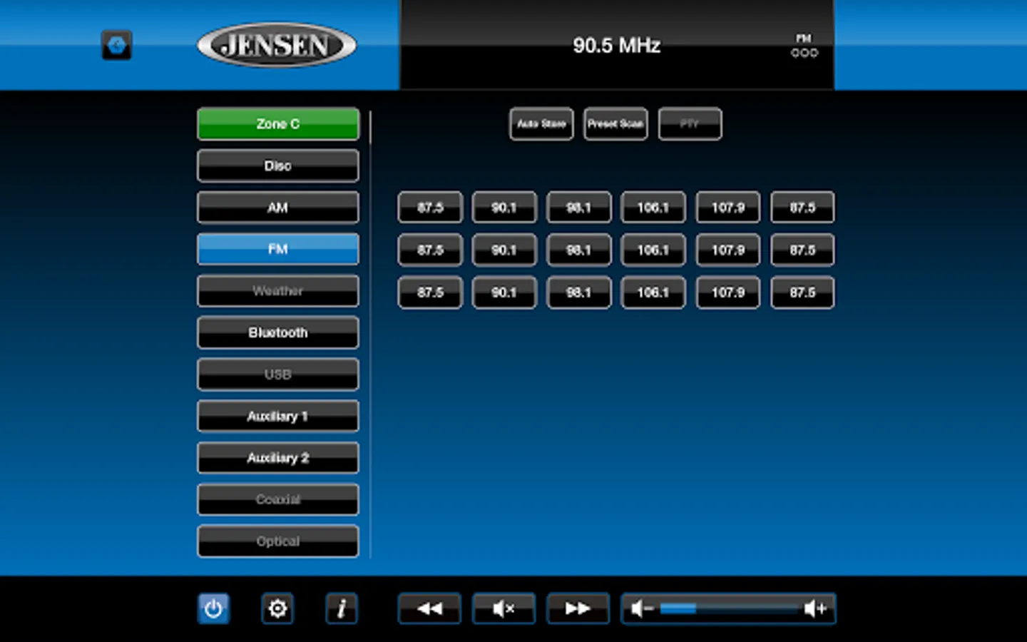 jControl is the ultimate wireless remote control for your JENSEN entertainment system. Put away your old remotes and enjoy the expanded convenience of all the primary functions of your JENSEN entertainment system right from your phone or tablet by transforming your mobile device into a functional remote control making it a perfect, hand-size, protable controller to fit your active lifestyle!