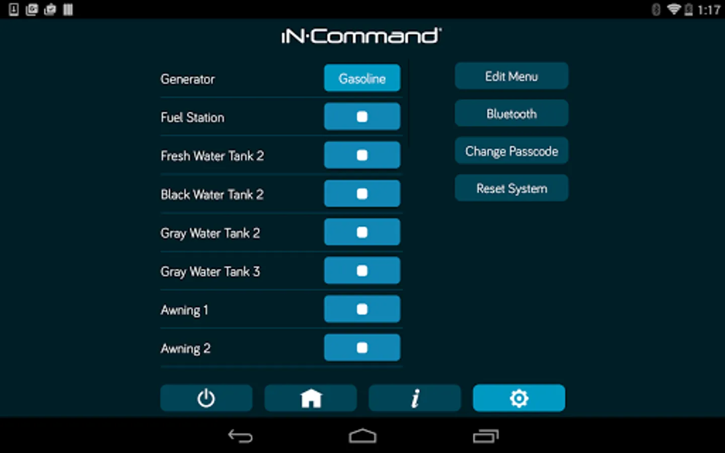 The iN-Command app transforms your smartphone or tablet into a fully functional remote control that can operate many of the primary functions of your RV from one convenient, easy-to-use mobile application. By syncing the setup with your RV system’s touch screen controller, JENSEN® puts you iN-Command of your RV.