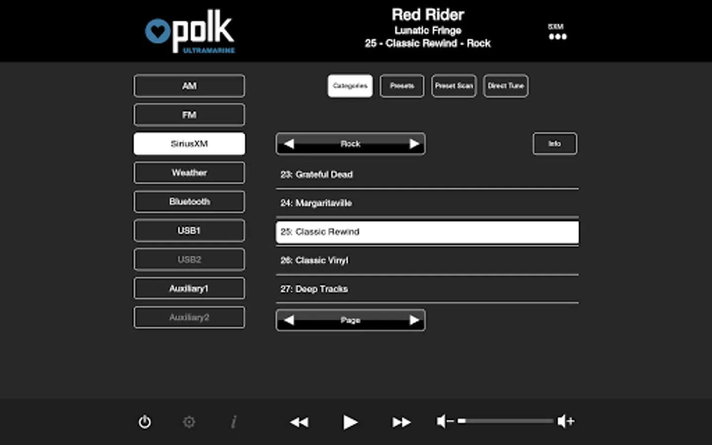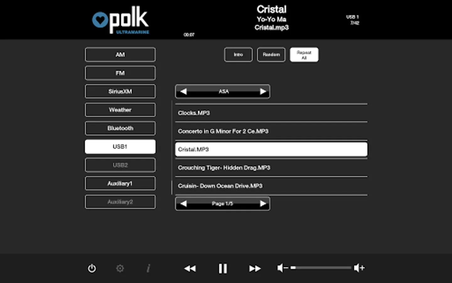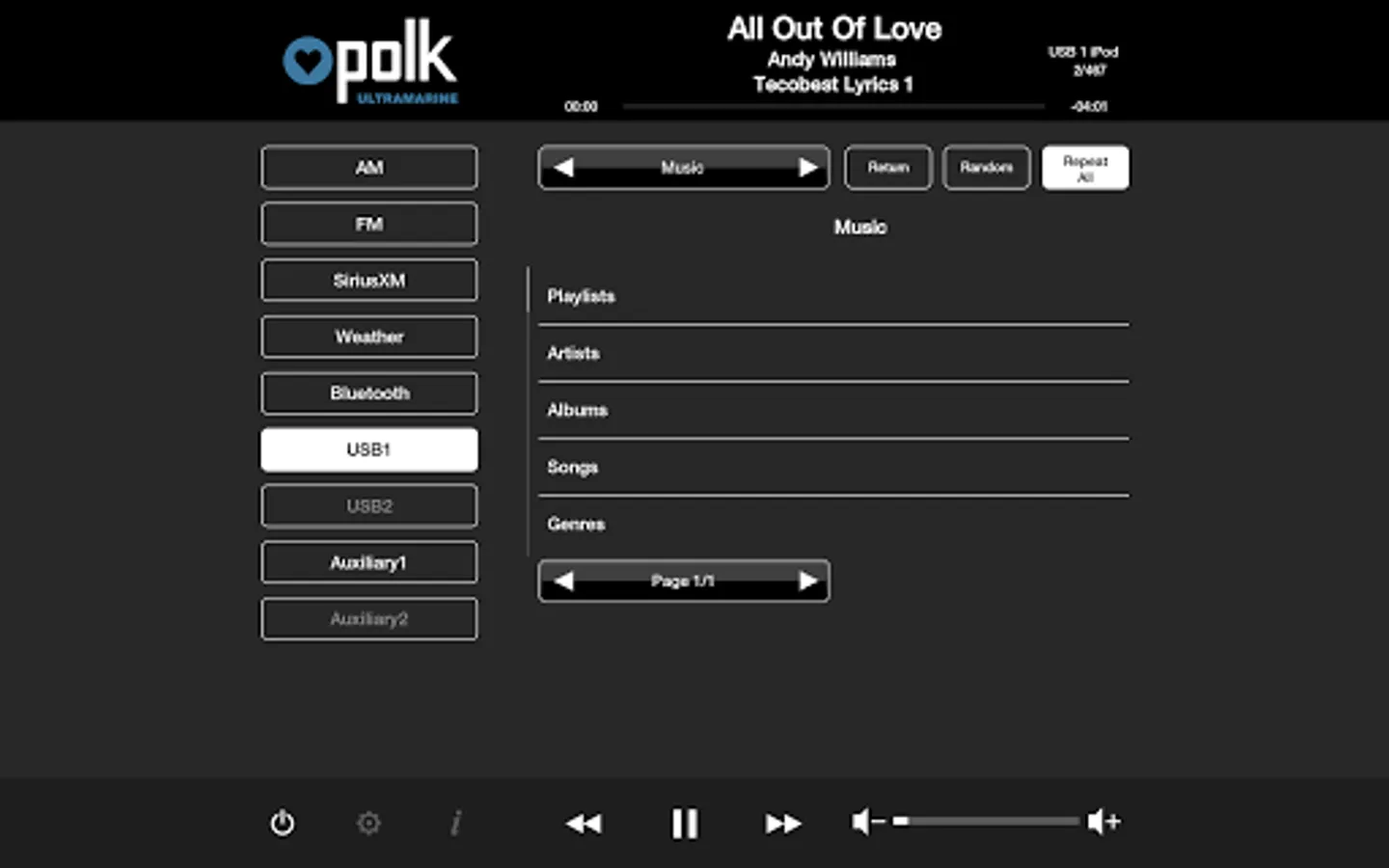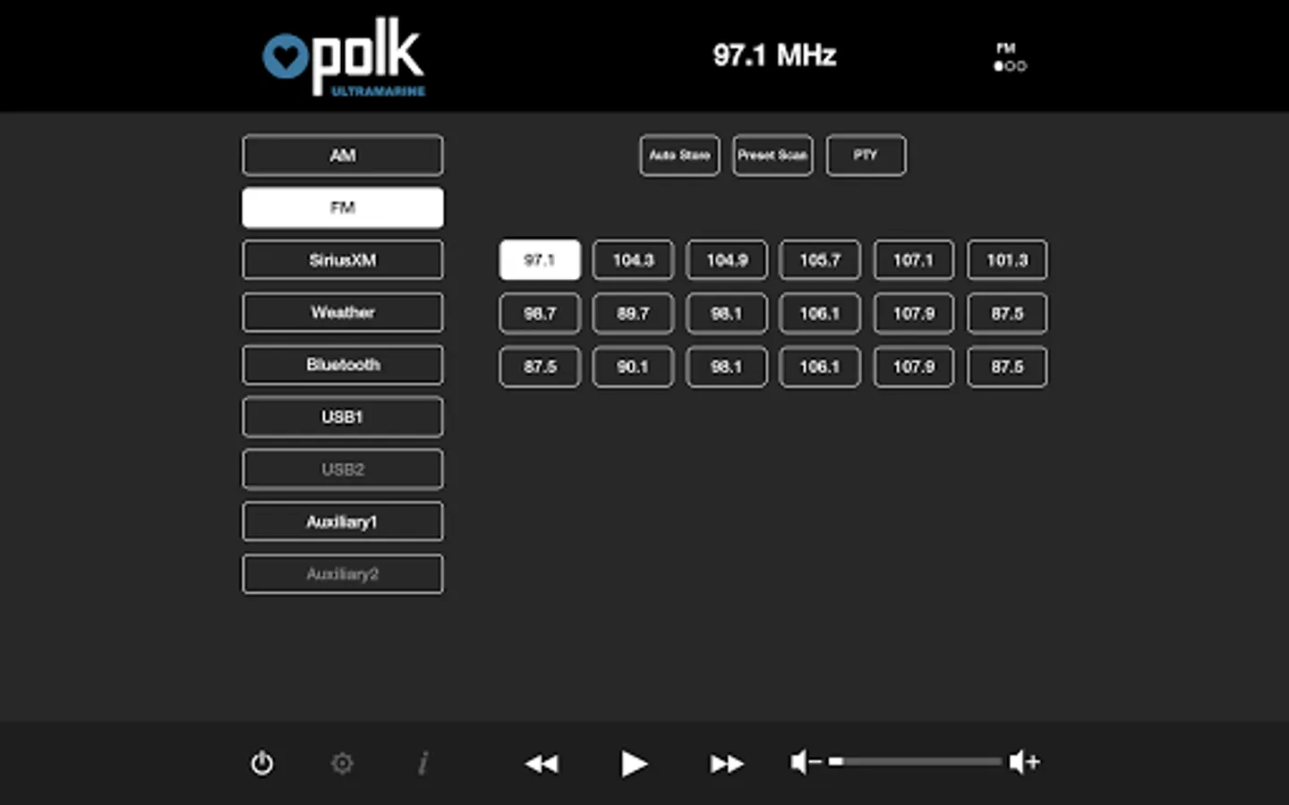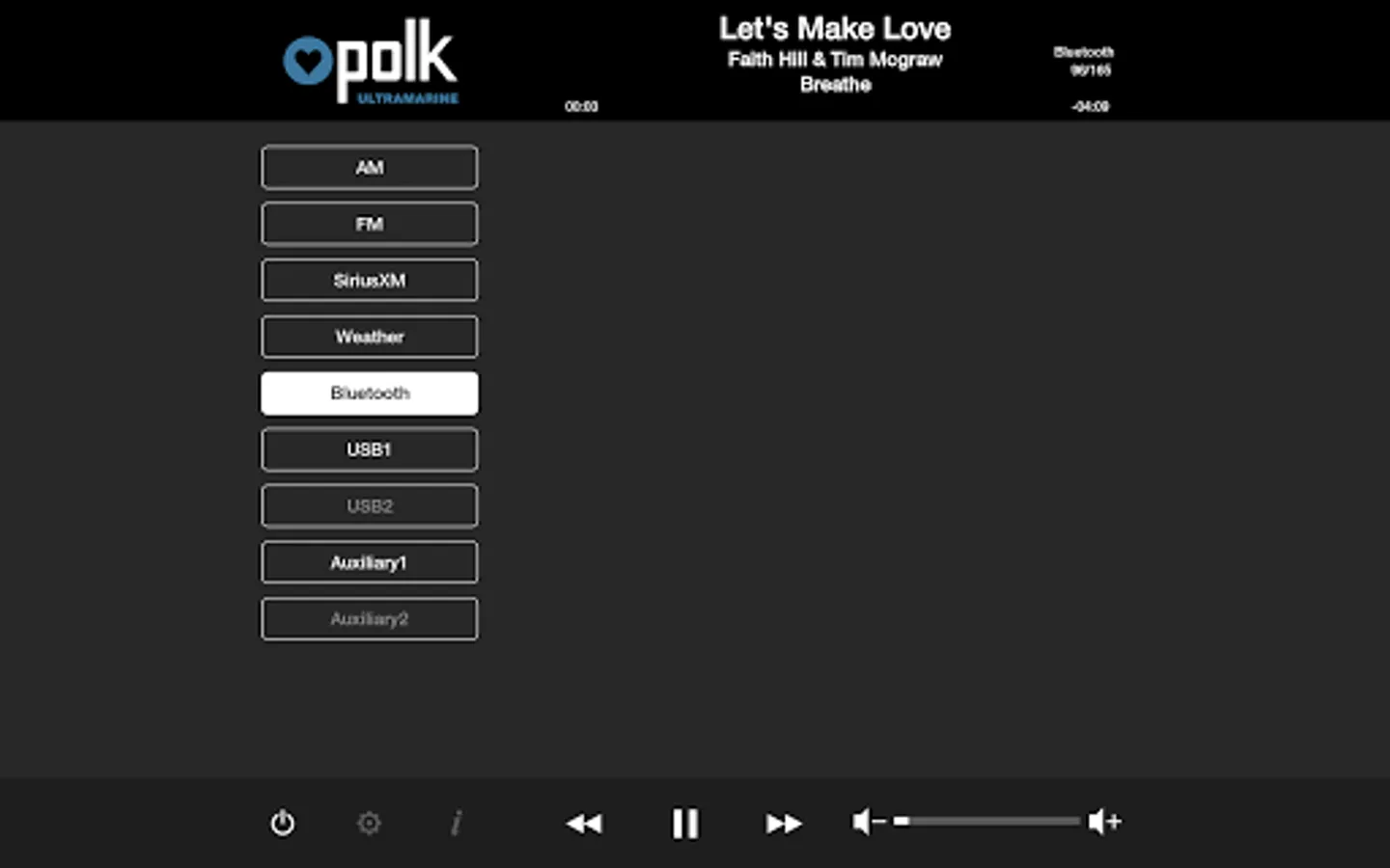 This app controls all of the primary functions of your Polk Ultramarine source unit including:
