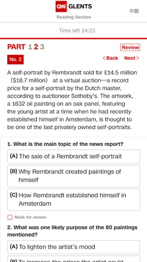 2. Reading section