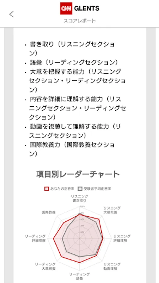 Score reports are available immediately after taking the exam. The CEFR-J comparison level based on the international evaluation standard CEFR, TOEIC® Listening and Reading Test prediction scores, and radar charts for each item are also displayed, allowing you to know your current English proficiency. . Answers and explanations can be viewed for one month from the day after the end of the examination period. How good is your English skill in the world? "Please try your hand at it."