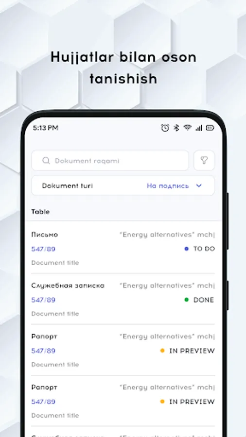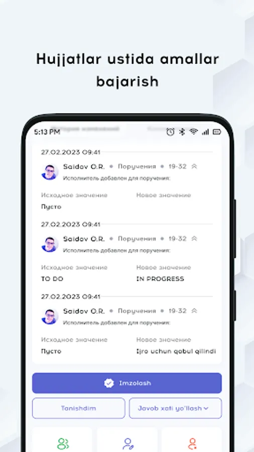 This is an application for Asakabank employees that simplifies and automates work with documents in the workflow, and also allows employees to keep track of their daily tasks and meeting schedules.