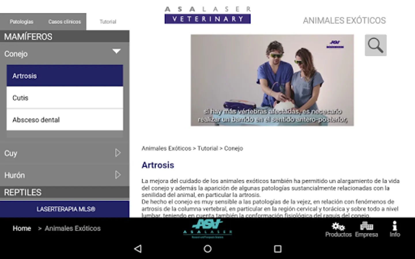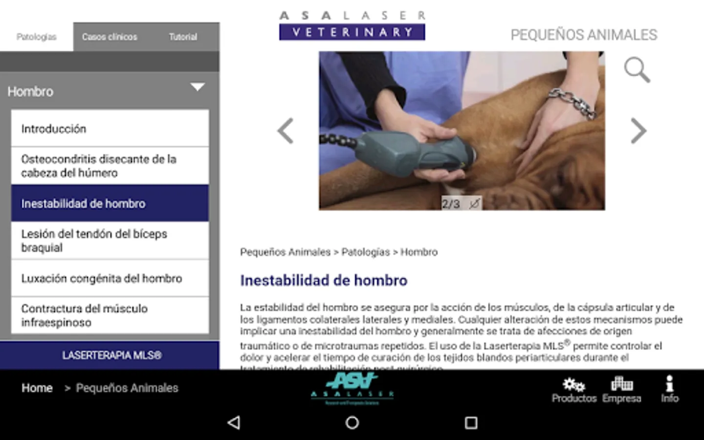 ASAveterinary is an application aimed at veterinarians and therapists apply MLS® laser therapy for pain, inflammation and edema in diseases of osteo-type muscle-tendon suffering dogs, cats, horses and exotic animals.