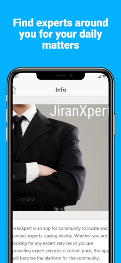 JiranXpert is an app for community to locate and contact experts staying nearby. Whether you are looking for any expert services or you are providing expert services at certain price, this app will become the platform for the community. JiranXpert is not only for professional services but also for any expertise that you need or you can provide. Example of services are house renovation, painting, grass cutting, electrical installation, washing machine repair, training , tuition, sofa cleaning, sewing, cooking for events or specific meal like ikan bakar, cinnamon rolls, mi rebus etc, childcare, elderly care, photography, arts and crafts making, delivery services, landscaping, pest control, car washing, chess training, robotic skills, piano classes, so on and so forth. Find all these experts around you since some skills, talents and 'know-how' person are staying around you and ready to assist you in daily life or emergency situation. He or she could assist you is your JiranXpert.