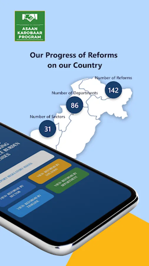 Government of Pakistan has launched Asaan Karobar Program as part of SME Development Policy to lessen the compliance burden on businesses particularly for Small and Medium Enterprises (SMEs). Prime Minister desired Board of Investment to undertake regulatory Reforms and Guillotine in line with international best practices to identify regulatory obstacles for elimination, simplification and modernization of regulations at all three tiers of government i.e. Federal, Provincial & Local government.