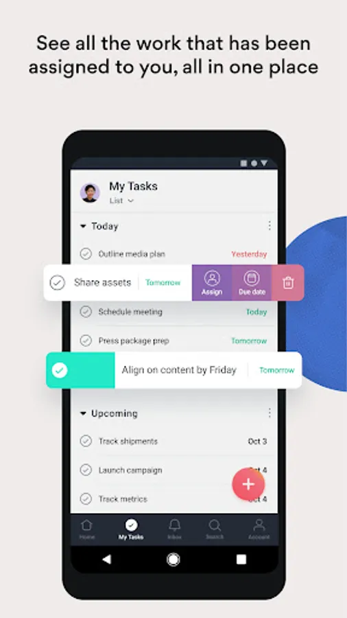 Keep collaboration going, wherever you are. Communicate with your teammates by liking, commenting, or attaching files directly to tasks. And get automatic updates about the projects and tasks that matter to you delivered directly to your Inbox.
