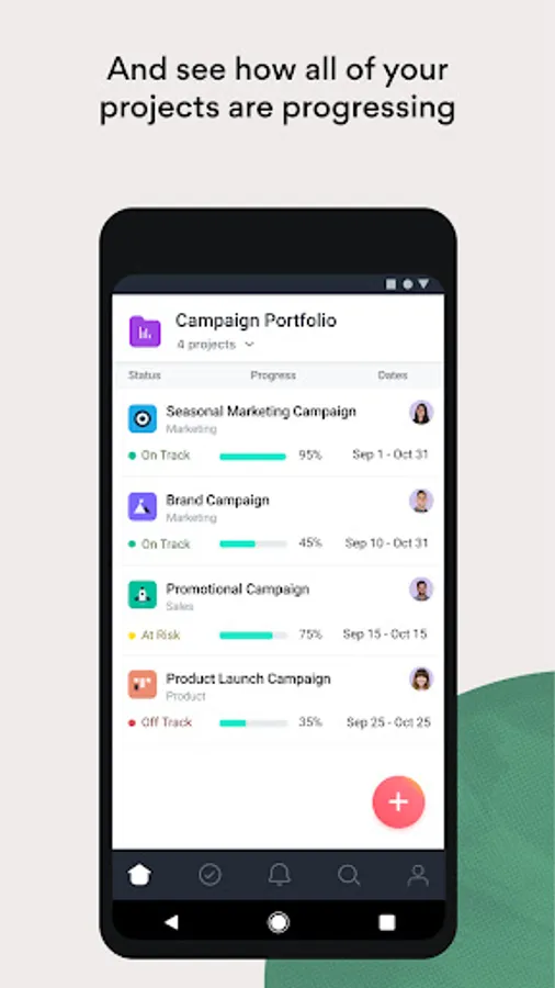 Access Asana on mobile or on the web. Project management doesn’t stop at your desk—no matter where you are, stay focused and keep your team’s work on track.