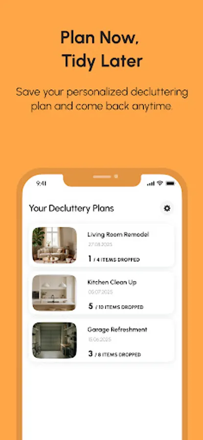 Life is busy, but your decluttering journey doesn’t have to wait. With Decluttify, you can create custom decluttering plans for every area—living room, kitchen, garage, and more. Save your progress, pick up right where you left off, and stay motivated as you see your personalized roadmap to a tidier home.