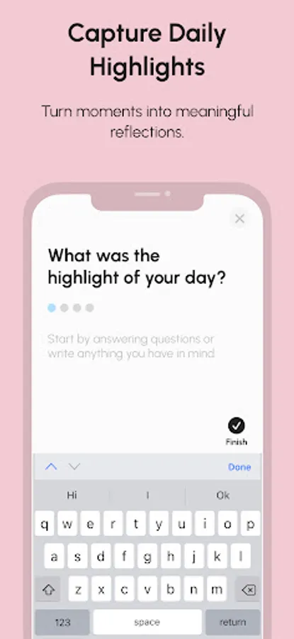 Go deeper than surface-level tracking. Reflect on what shaped your day with guided journaling prompts and voice notes. Capture the highlights that matter, and turn fleeting moments into lasting insights. With each entry, you gain a clearer understanding of yourself—and the power to shape tomorrow.