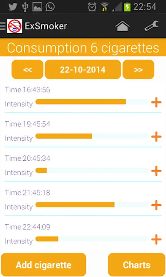 - Consumption Measurement: tool to register the consumption of cigarettes. It helps you to have a clear idea of how much you smoke, when you smoke and the need you had to smoke each cigarette. The free version has a limit of 5 cigarettes per day.