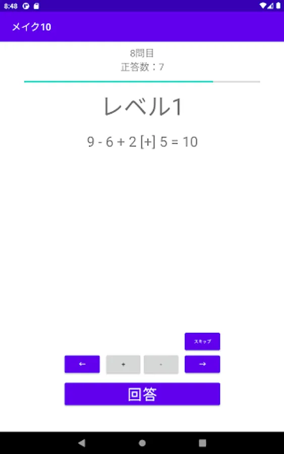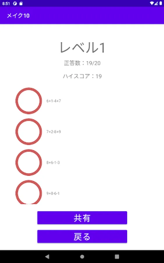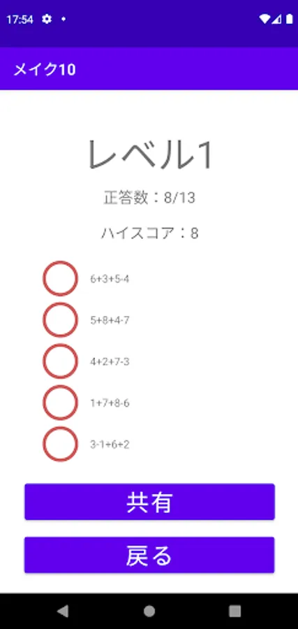 In Sudden Death, the first problem is to make 10 by inserting + or - into four numbers. The two modes of "insert + or -" and "insert +, -, ×, ÷" are alternately repeated every 5 questions. Also, since the number increases by 1 every 10 questions, more calculations are required for each question as the number of questions increases.
