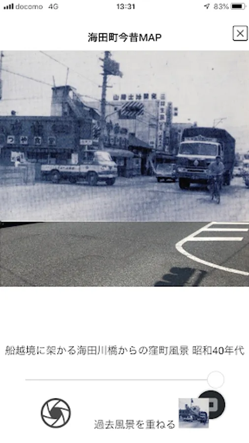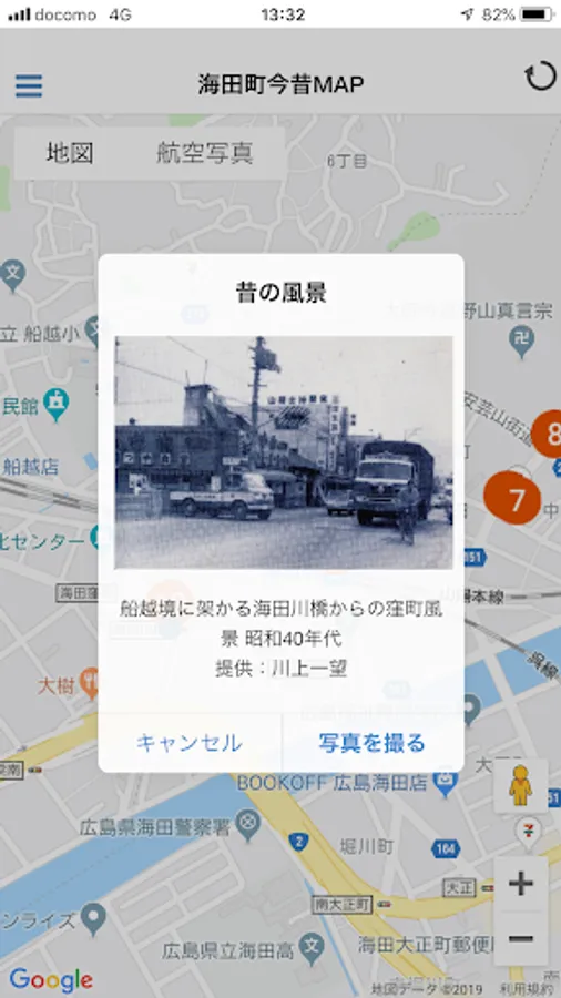 We map on the map where old photographs collected in Ada-gun, Aki-gun, Hiroshima, were taken. Also, at that point, you can take a picture of the current scenery while comparing it with the old picture.