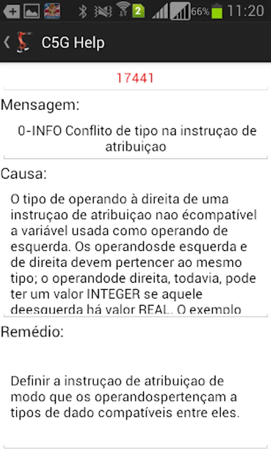 Make it much easier to access the message, cause and solution, even in the Portuguese language.