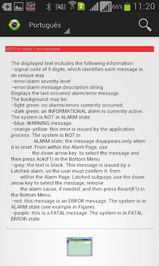 The aim of this application is to facilitate the maintenance staff, integrators and technical assistance to information of the alarm codes in C5G.