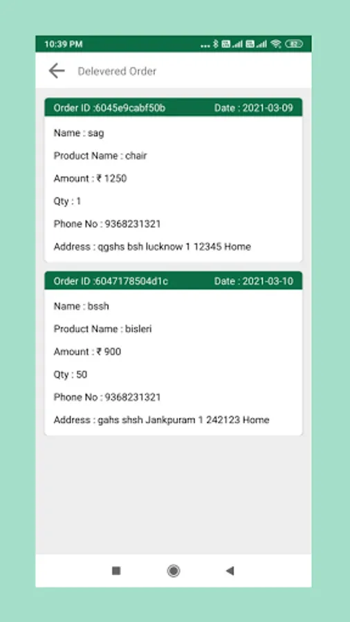 • Orders categorized into Delivered, Failed and Ongoing can be viewed by the delivery boy.