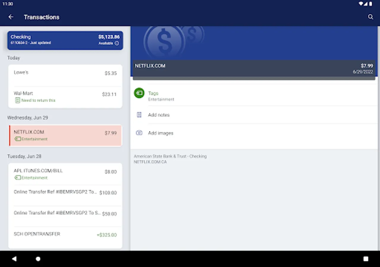 -Keep your transactions organized by allowing you to add tags, notes and photos of receipts and checks.