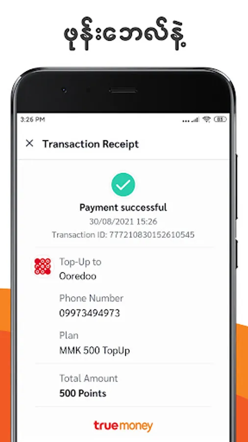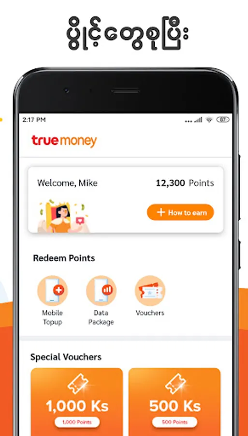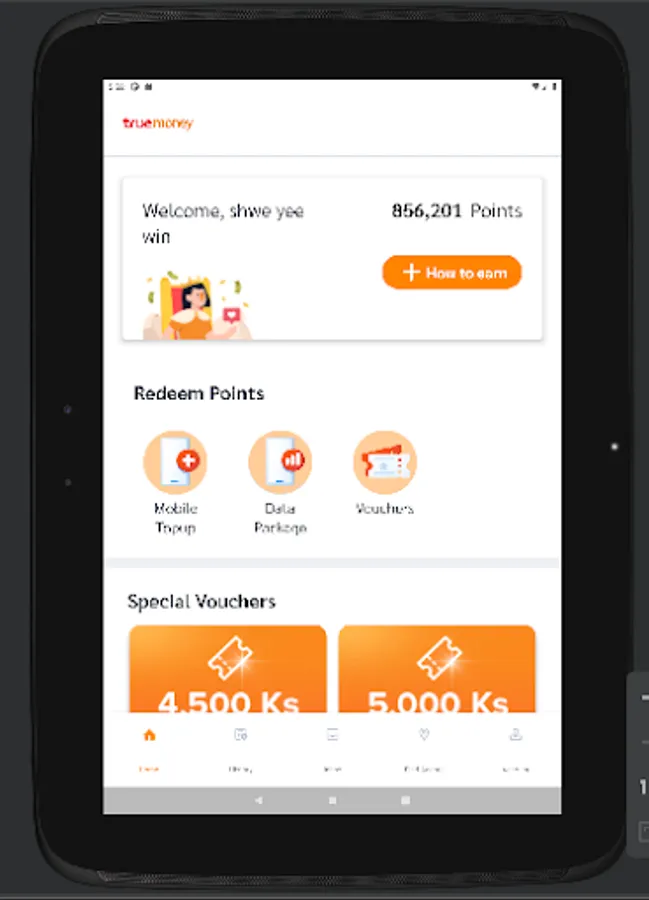 TrueMoney Rewards App is designed for its loyal customers to give reward points. Customers can keep their points as long as they are using TrueMoney services. Their points are in their hands. Whatever amount of points they have, they decide how to use them and choose any of TrueMoney Myanmar's deals and offers.