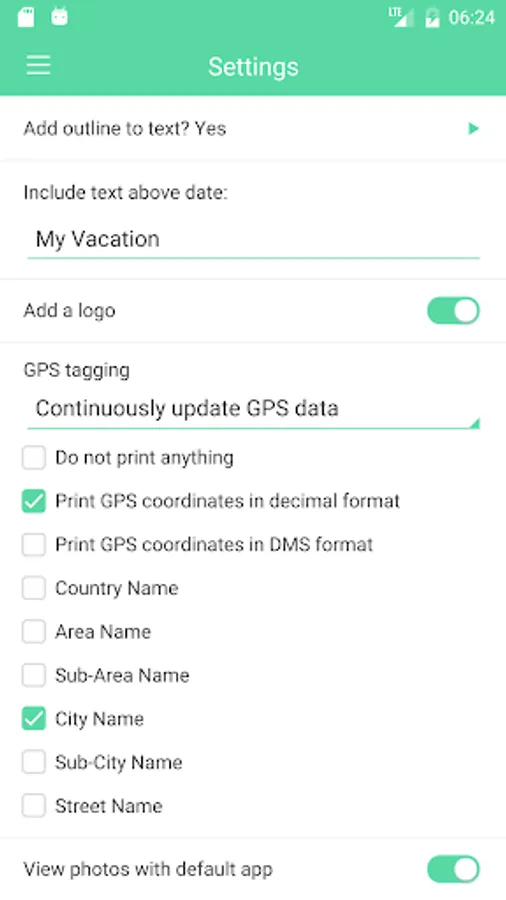 - Text location – lower left corner, lower right corner, upper left corner and upper right corner, lower center, upper center.