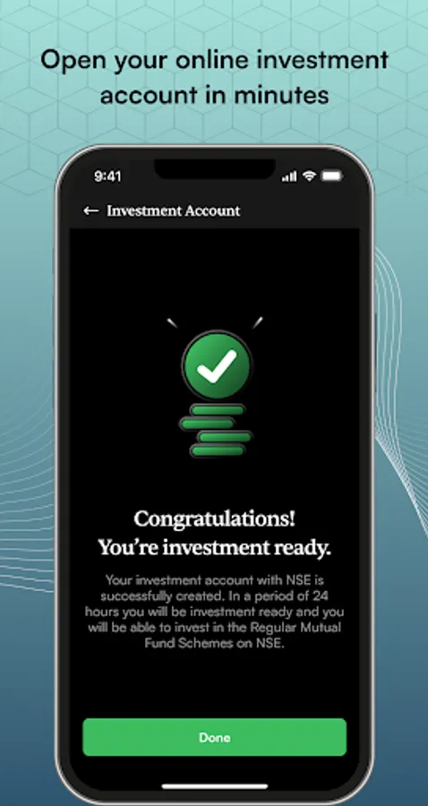 Our app is secure, with PIN and biometric authentication options. You can manage your mutual fund portfolio and view all transactions and SIPs, as well as search for and compare different mutual funds. Online investment account creation is simplified to just 5 minutes, and you can complete the whole transaction journey within the app without having to authenticate the transaction from email. Mandate authentication can also be completed within the app and activated within 2 minutes.