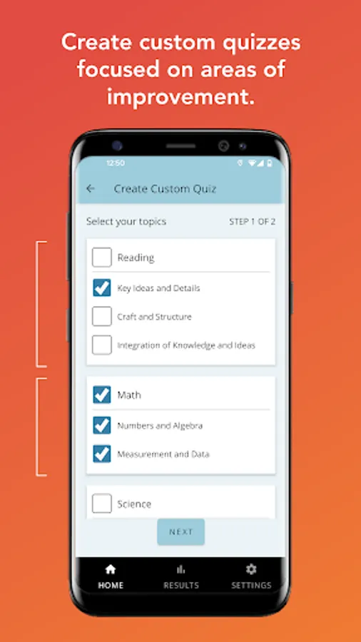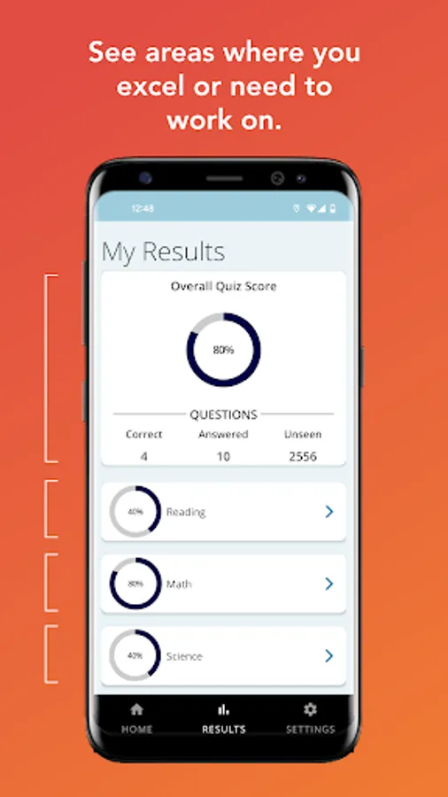 • 2 different quizzes by topic area including: reading, math, science, and English and language usage)