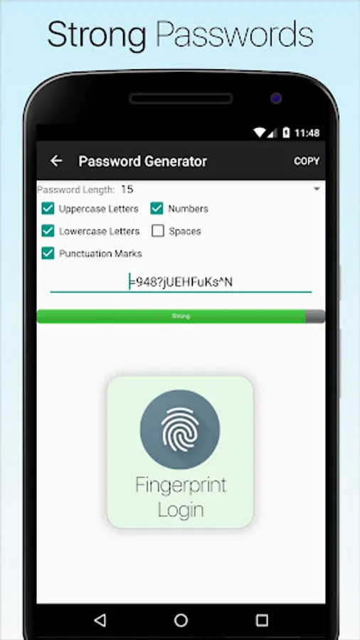 The Leading Password Manager for Android Phones & Tablets ◆ AES Encryption ◆ Fingerprint Authentication ◆ Synchronization ◆ Automatic Backups ◆ Password Generator ◆ Flexible Templates ◆ Advanced Security Options