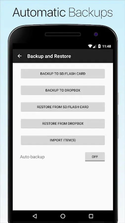 • Backup your data automatically to insure you never lose your important information.