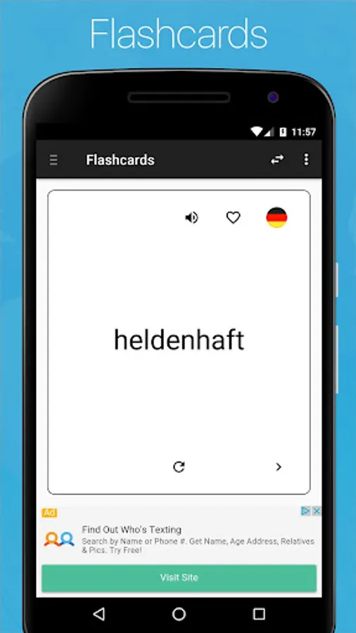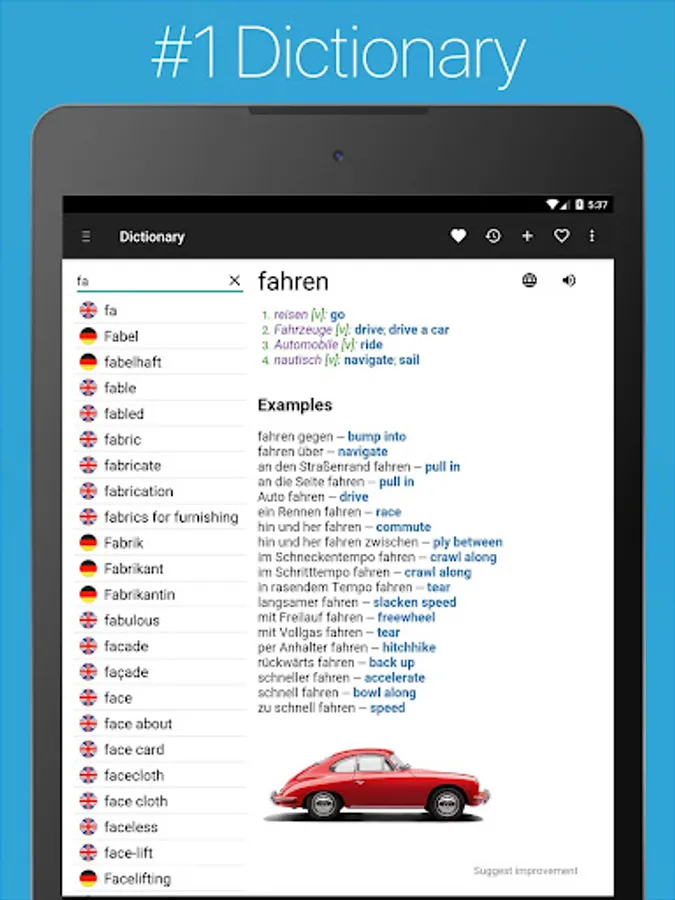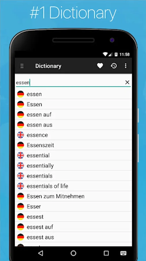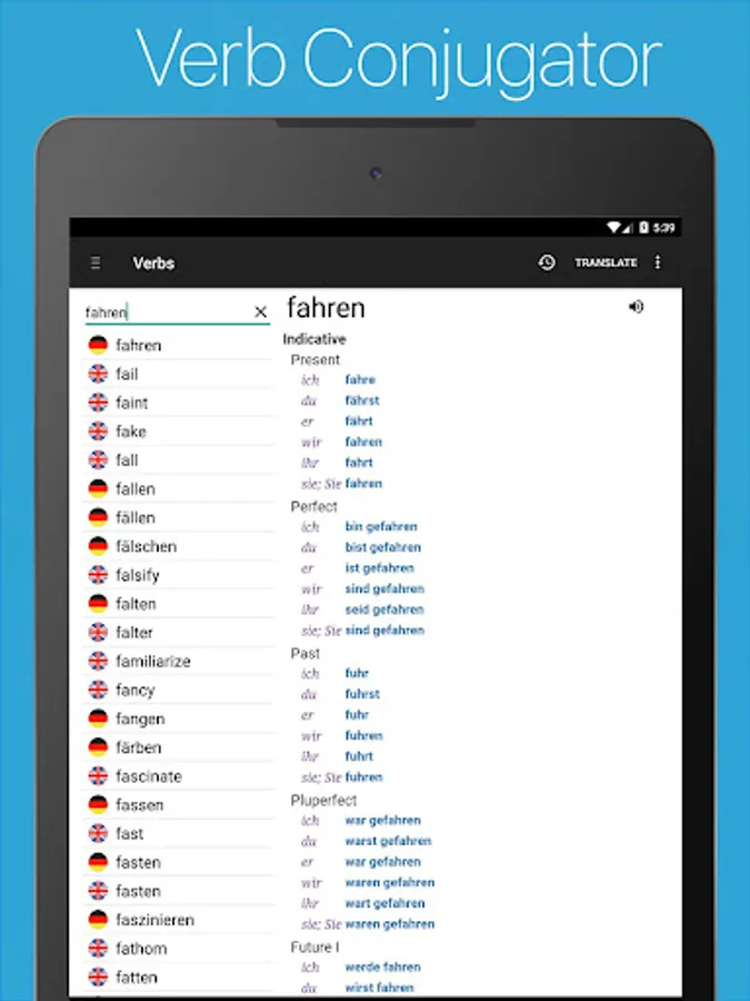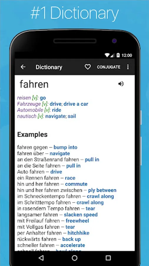 The #1 German English Dictionary for Android Phones & Tablets ✦ Comprehensive Offline Dictionary ✦ Phrasebook ✦ Verb Conjugator ✦ Phrase Translator ✦ Flashcards ✦ Audio Pronunciation ✦ Vocabulary Quizzes