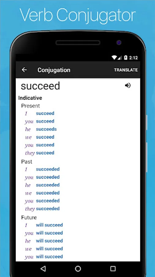 ✓ Conjugations of 6.466 verbs.