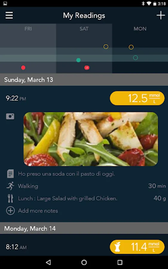 • View – if you use insulin and/or log your carbs, you can now see your insulin doses, carb intakes and blood glucose results in one simple view