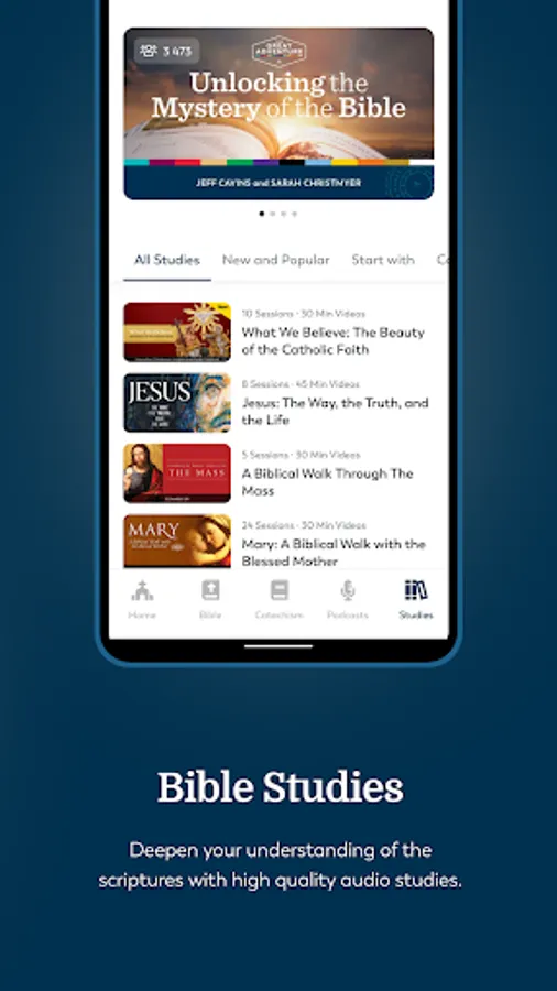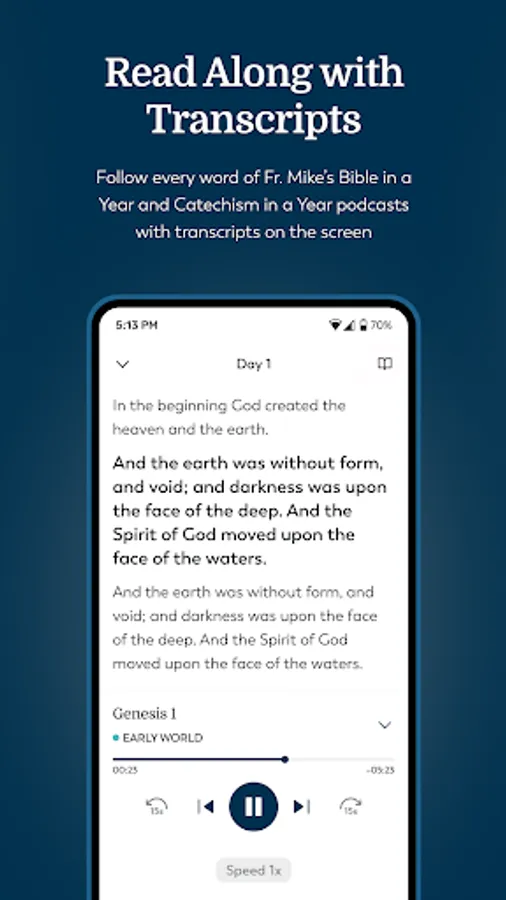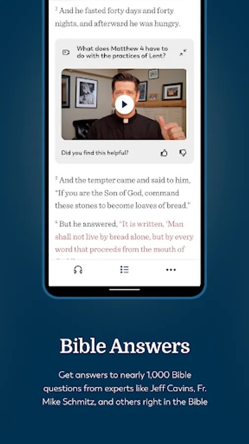 Listen to Bible in a Year and Catechism in a Year while reading along with the texts! The Ascension app is the only app in the world to combine Bible in a Year with Fr. Mike Schmitz and Jeff Cavins, the Great Adventure Catholic Bible, Catechism in a Year, and the Catechism of the Catholic Church, Ascension Edition, in the same place.