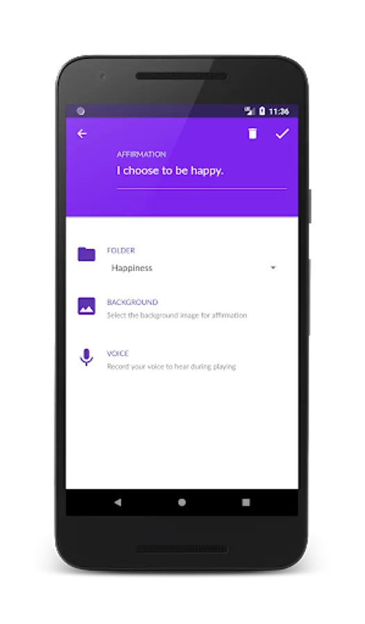 You can modify the affirmation text, folder, recording and image by clicking the affirmation