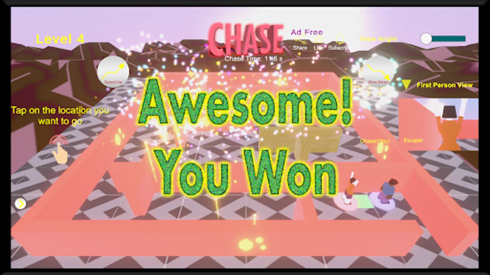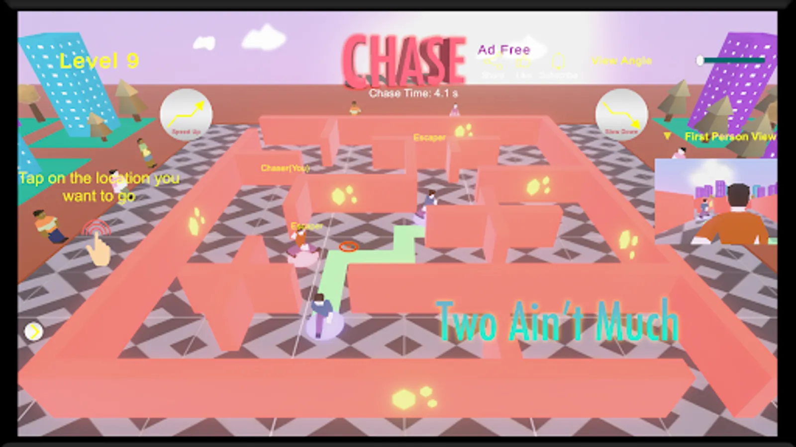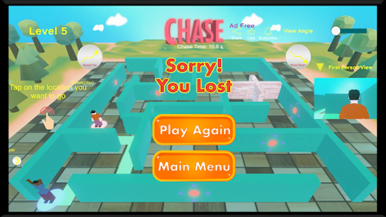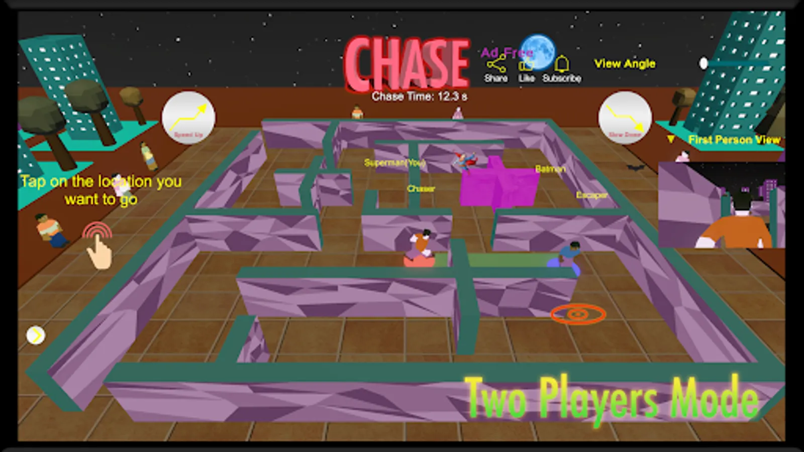 The chase game comes with multiple characters to choose from allowing one to customise the game in the best way. One can choose the navigation controls from split, left, right or tap options. One can also configure the view angle of the maze.