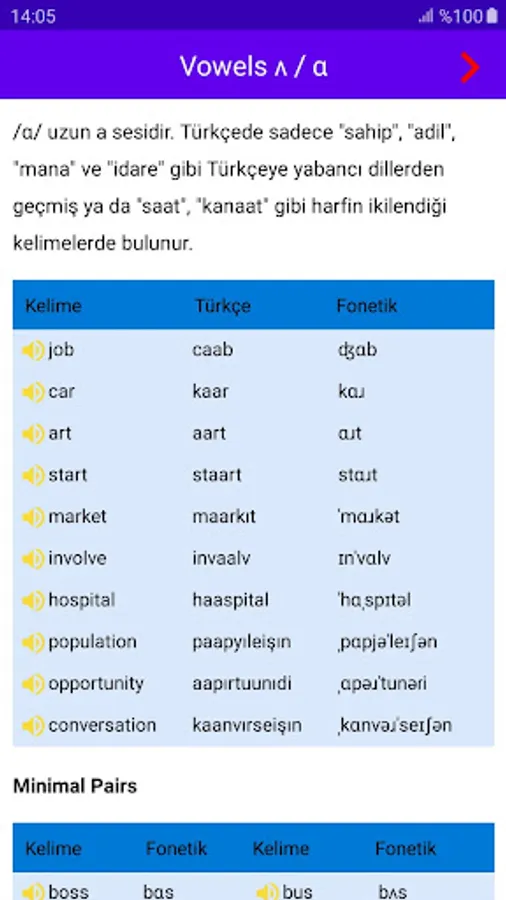 With Asch English, you can start from the basics and gradually improve your grammar and become familiar with the use of grammar with the examples and usage areas. You can systematically learn the international phonetic alphabet, which is indispensable in the development of pronunciation skills, and check the words you encounter at any time through the phonetic alphabet dictionary. If you need to go abroad or need to express yourself in a short time, you can find almost every phrase you need in the "Phrase Book" section of our application. Finally, you can learn selected words from various topics or "phrasal verbs", which are often difficult for English learners to learn.