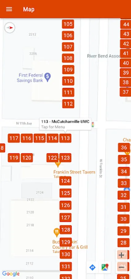 View all of the booths on a Google Map to see which are nearby using your phone's GPS, and tap on a booth to see what munchies they are offering.