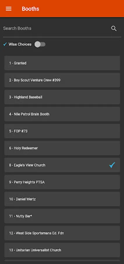 In 2012 Deaconess introduced Wise Choice menu items. Find these indicated with a check mark in the app. See which booths are offering Wise Choices this year, and view the nutrition information for these wise choices.