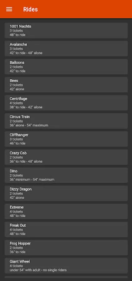 A list of the Fall Festival's great rides with ticket and height restriction information!