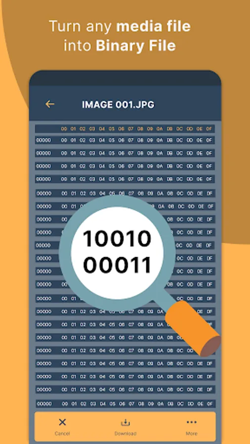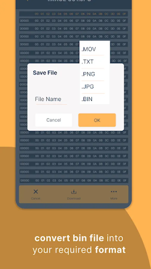 Bin File Opener app let you view or open bin files. Bin converter Number System Converter is a versatile file converter, binary translator or binary converter android app that empowers you to convert files into bin format, open or view bin files, perform text-to-binary conversions, and seamlessly switch between different number systems. Bin files are computer files that store data in binary format, which means the data is represented using a series of 0s and 1s. Bin File opener bin Converter allows you to convert files and text to binary format easily.
