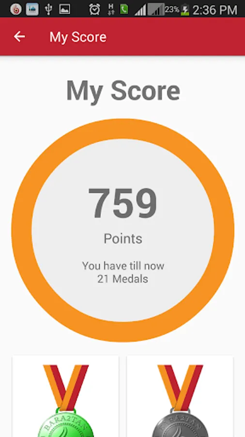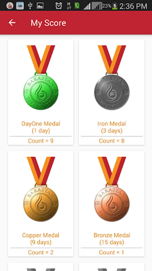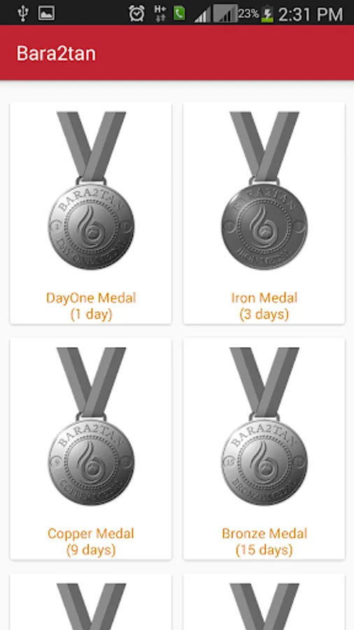 التطبيق مزود بنظام نقاط تشجيعي و ميداليات خاصة بكل مرحلة (عدد معين من الأيام المتتالية)