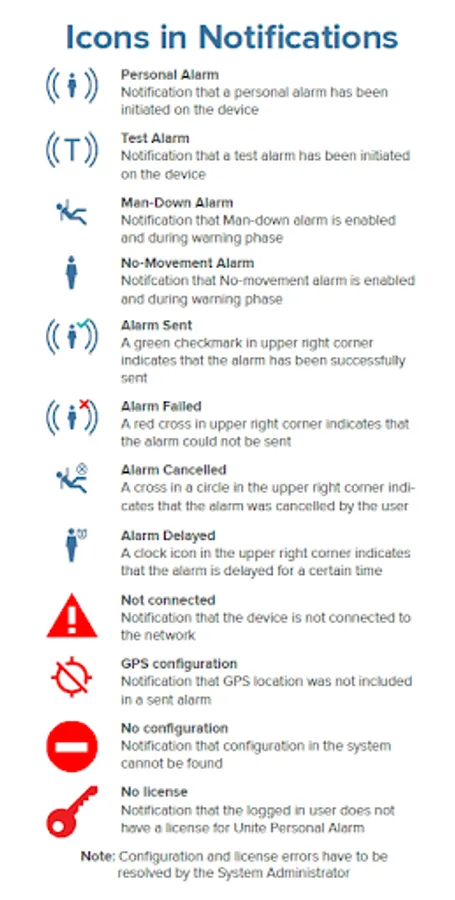 • With a push of a button send a personal alarm to colleagues' mobile devices and/or to operators at central monitors