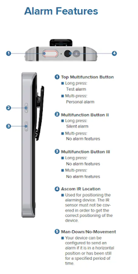 Ascom Myco 3, when combined with the Unite Personal Alarm mobile app, offers personal security features suitable for potentially hazardous environments and lone workers.
