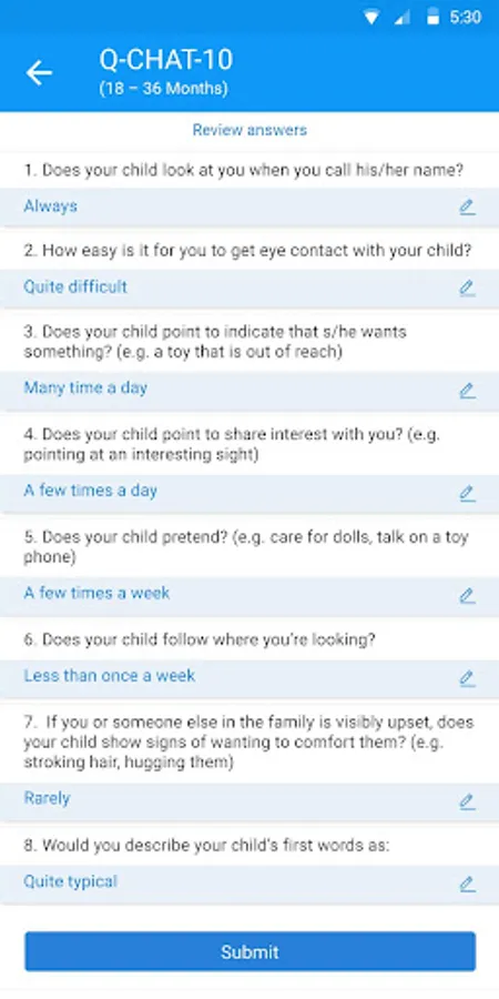 This app is solely for research purposes and not for commercial use. The app contains Autism Spectrum Disorder (ASD) tests to enable parents, care givers, and academic researchers access them. These tests are not diagnostic tools rather they are behavioral tests that just pinpoint to autistic traits. The app can be freely downloaded and distributed but cannot be used for financial gain.