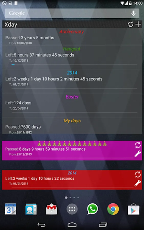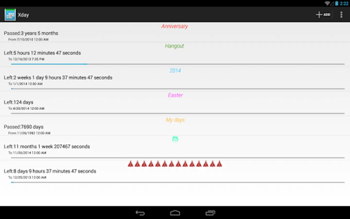 Set a date, set an hour and Xday will calculate for you the time left or passed collecting all your preferred date in one single screen, constantly updated.